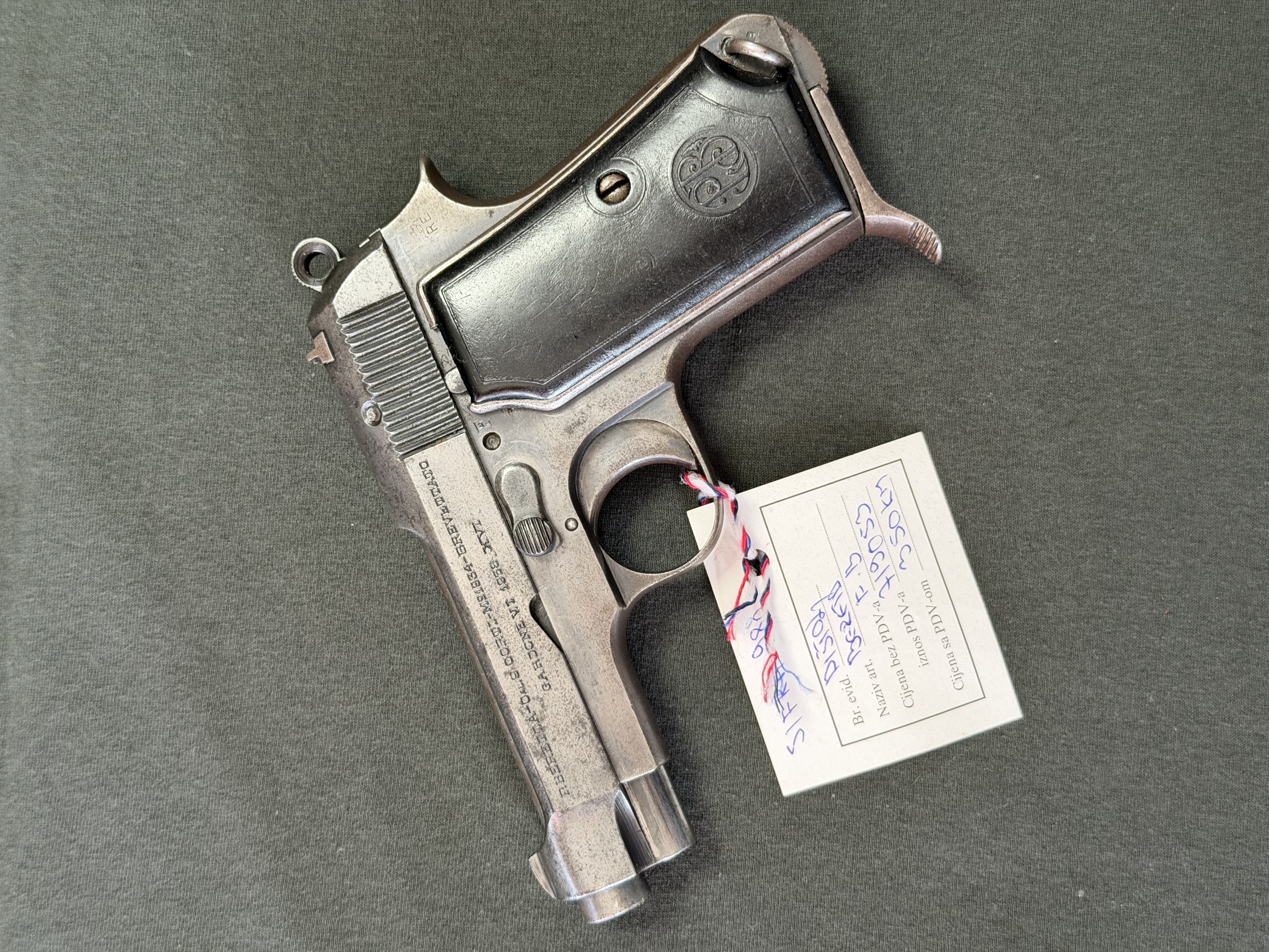 Pištolj Beretta FB9, kalibar 9 mm Short italijanske proizvodnje.Kompaktan i pouzdan poluautomatski pištolj, pogodan za ličnu zaštitu i kolekcionare. Odlikuje ga kvalitetna izrada, precizan mehanizam i karakterističan Beretta dizajn. Zahvaljujući kompaktnim dimenzijama, praktičan je za nošenje, a kalibar 9 mm Short pruža dobar balans između snage i kontrole trzaja.