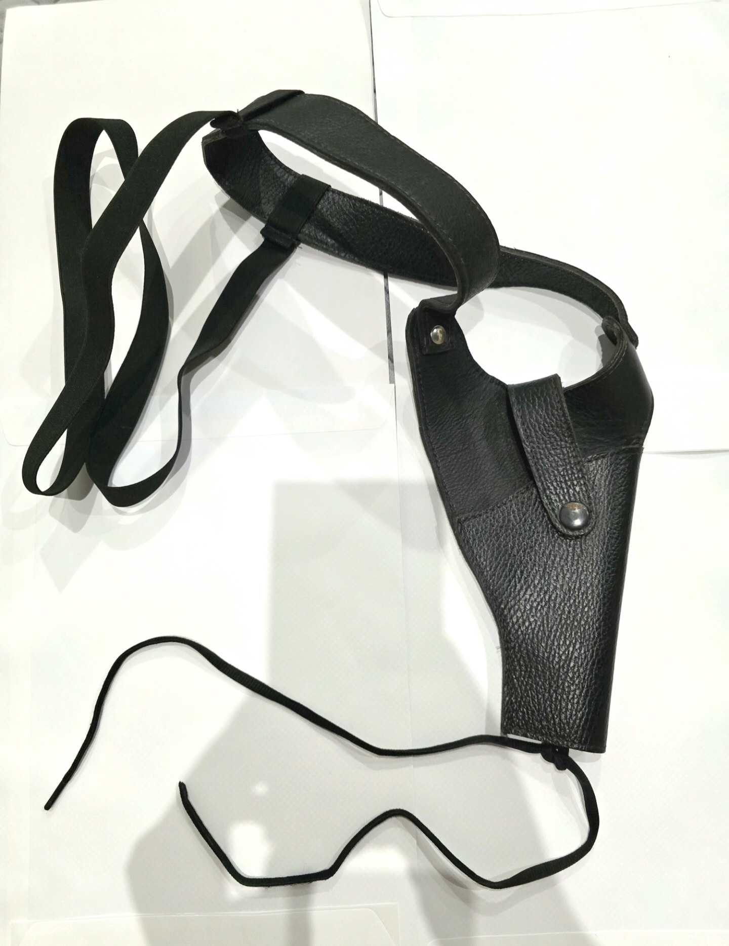 Kožna futrola za pištolj ispod pazuha, dimenzija 21 cm * 11 cm, sa donjim zatezačem za kaiš pantola. Odgovara za pištolje CZ M57 (tetejac), Češka Zbrojovka P-09, Glock 17, CZ M70. Bez tragova korištenja.