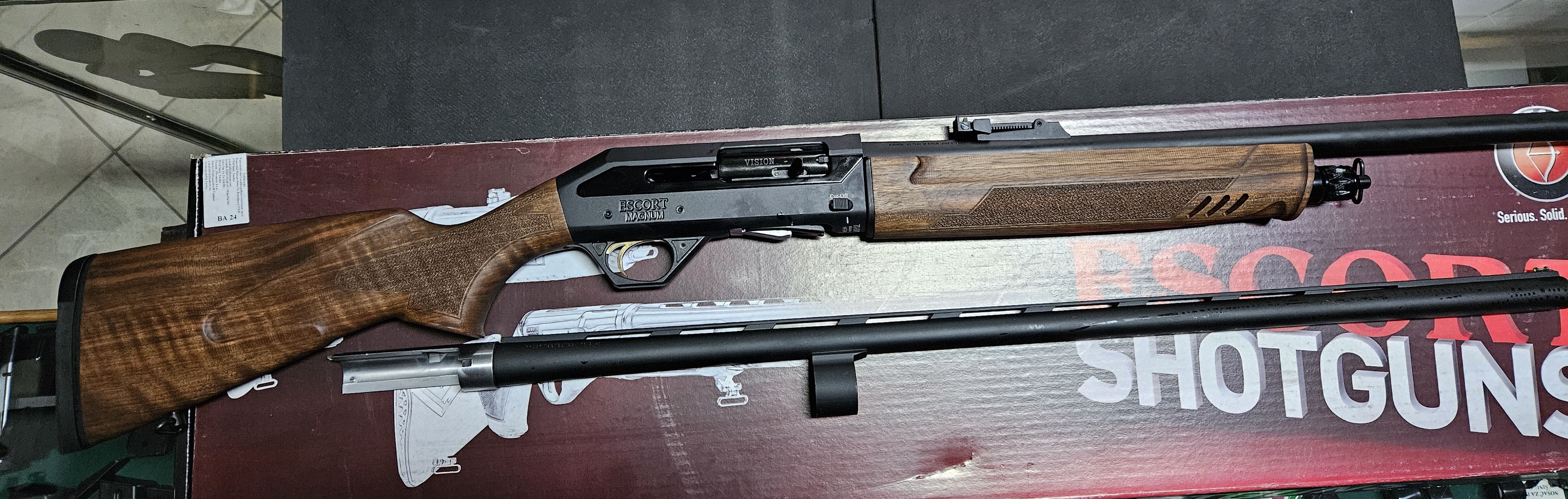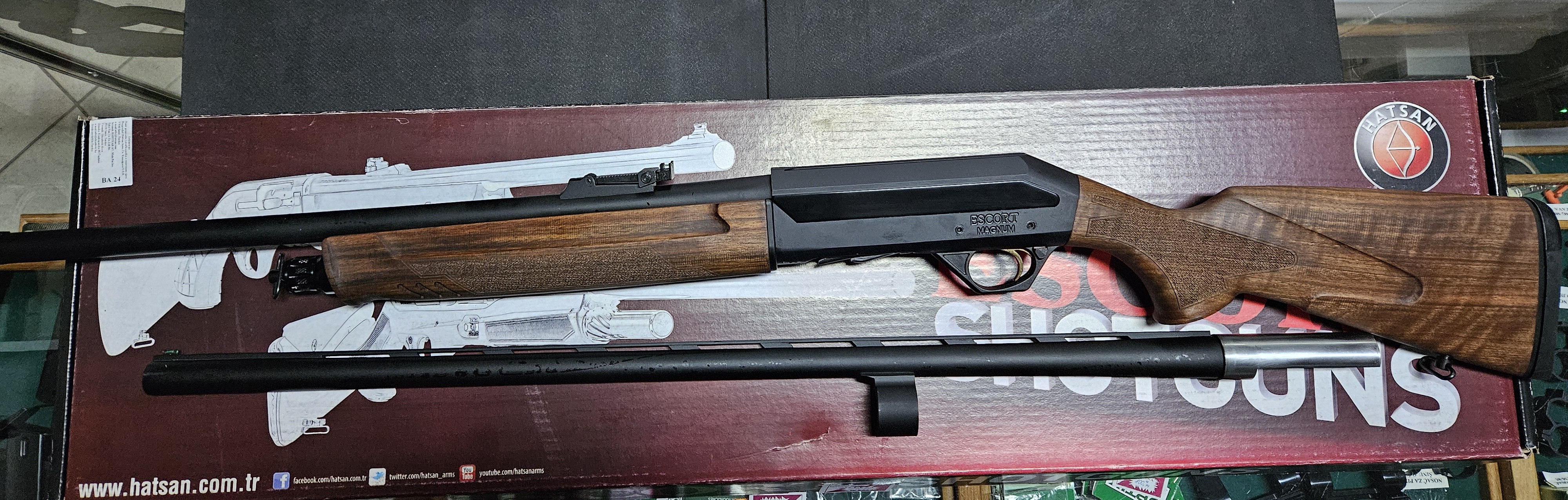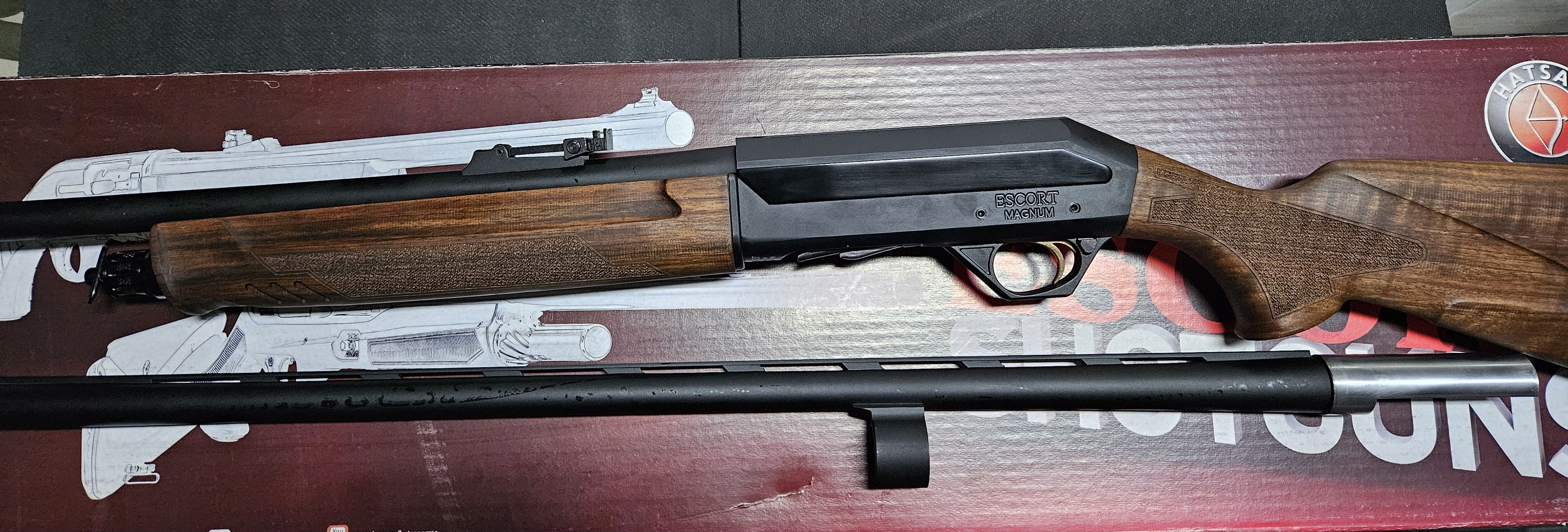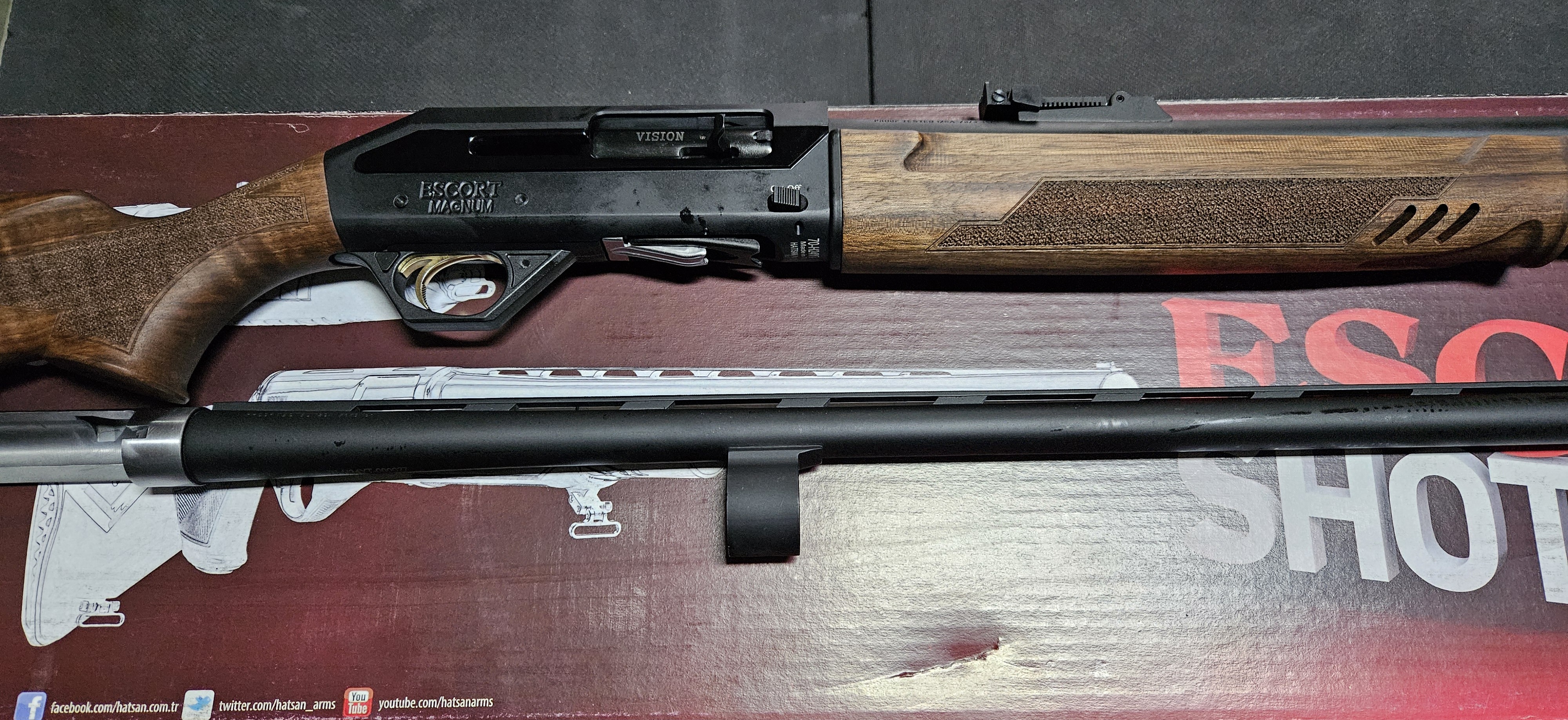 Poluautomatska lovačka puška Hatsan Escort Vision Combo u kalibru 12/76 i u kompletu sa standardnom cijevi dužine 76 cm i slug cijevi sa podesivim mehaničkim nišanima i dužinom od 61 cm.Komplet sadrži nastavak za dodatna 3 metka,5 mobilnih čokova i ostali prateći pribor.