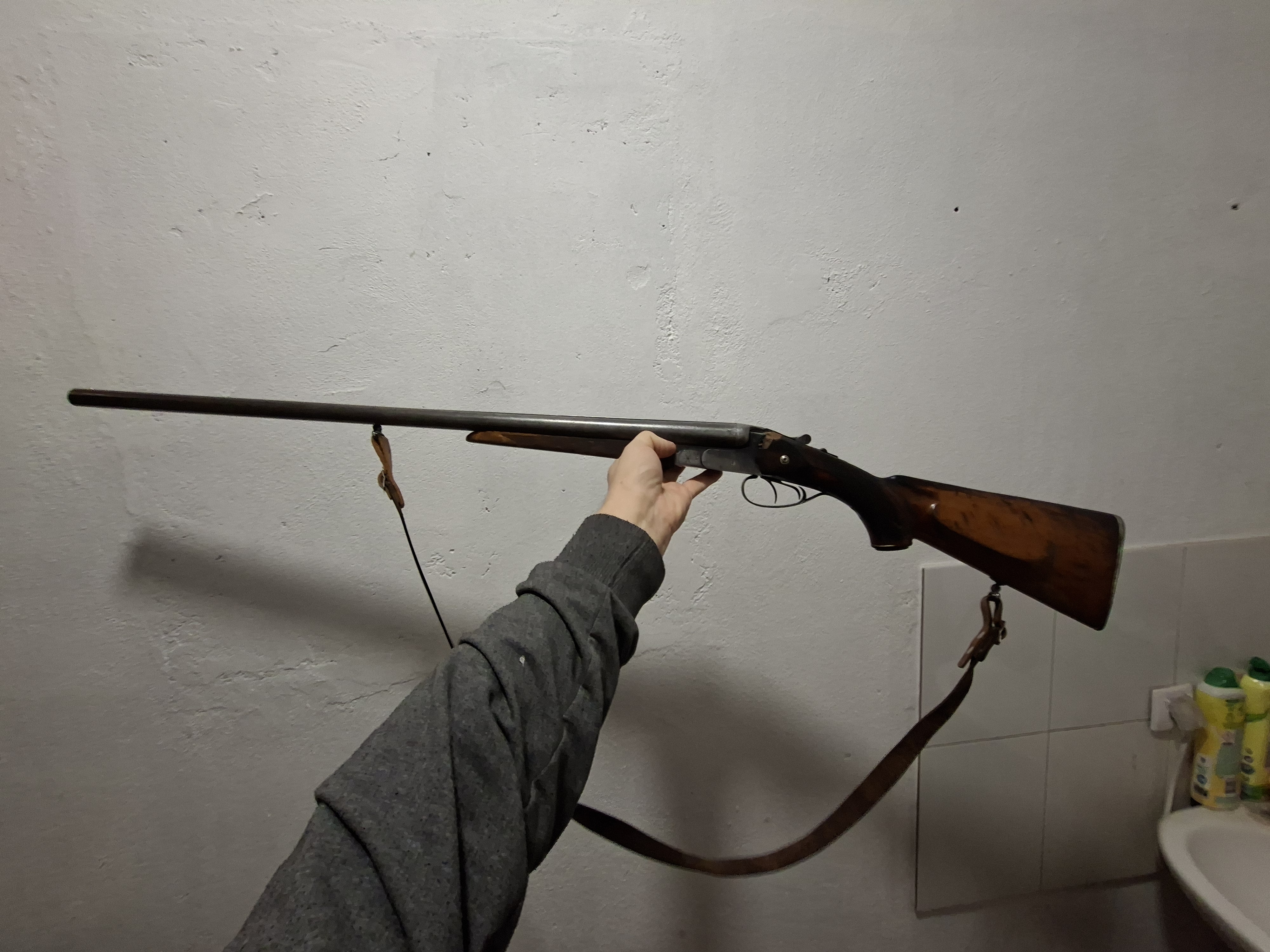Lovačka sačmarica položara Zastava M75 (kal. 12/70).Cijevi su iznutra čiste i sjajne. Drveni kundak je od orahovine, s vidljivim tragovima korištenja koji mu daju autentičan lovački izgled.