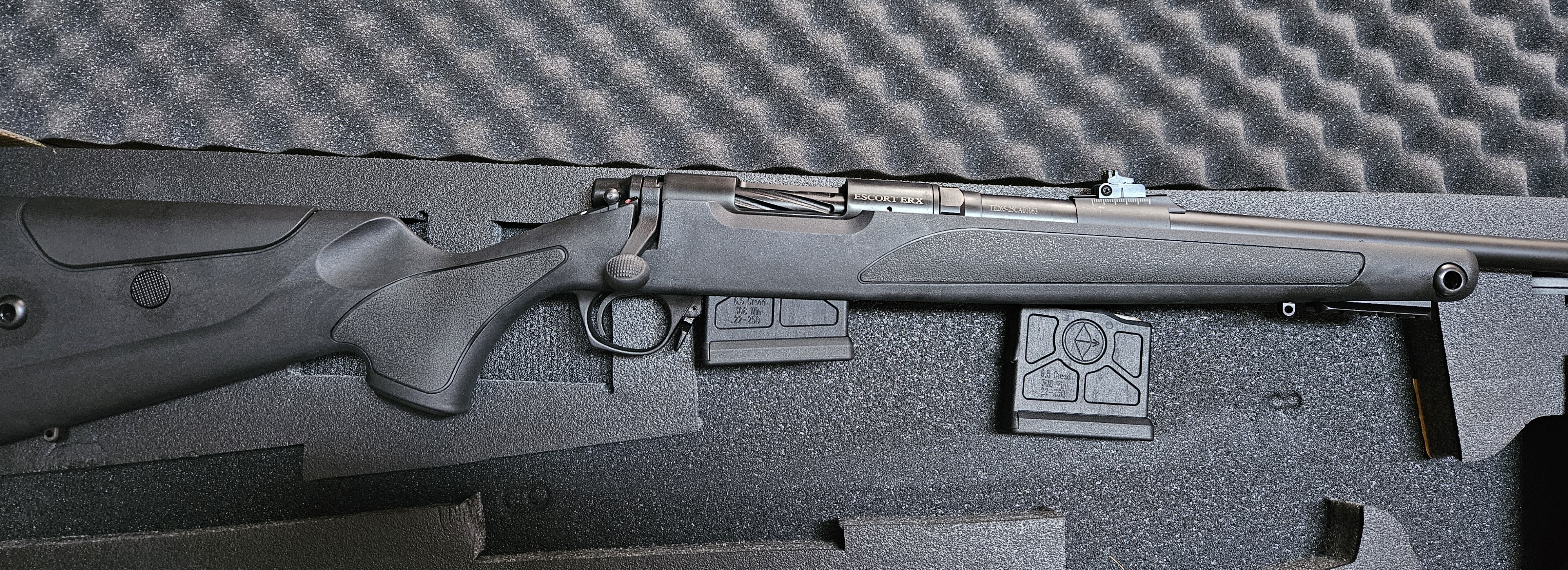Lovački karabin Hatsan Escort ERX Synthetic sa mehaničkim nišanima,polimerskim kundakom sa podesivom obrazinom,rezervnim spremnikom, navojem na cijevi.