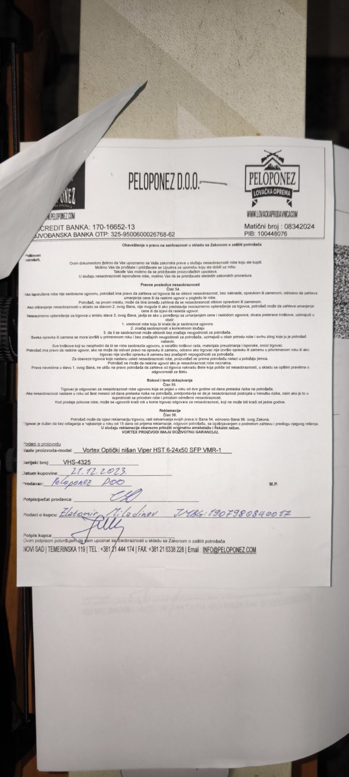Optički nišan kupljen nov u prodavnici lovačke opreme u Novom Sadu. Nakon svake upotrebe lovačkog karabina obavezno sam stavljao navlaku radi zaštite na samom optičkom nišanu. Optički nišan se prodaje bez pikatini šine i prstenova za montiranje optike a dolazi u original pakovanju u najlonu uz doživotnu garanciju.