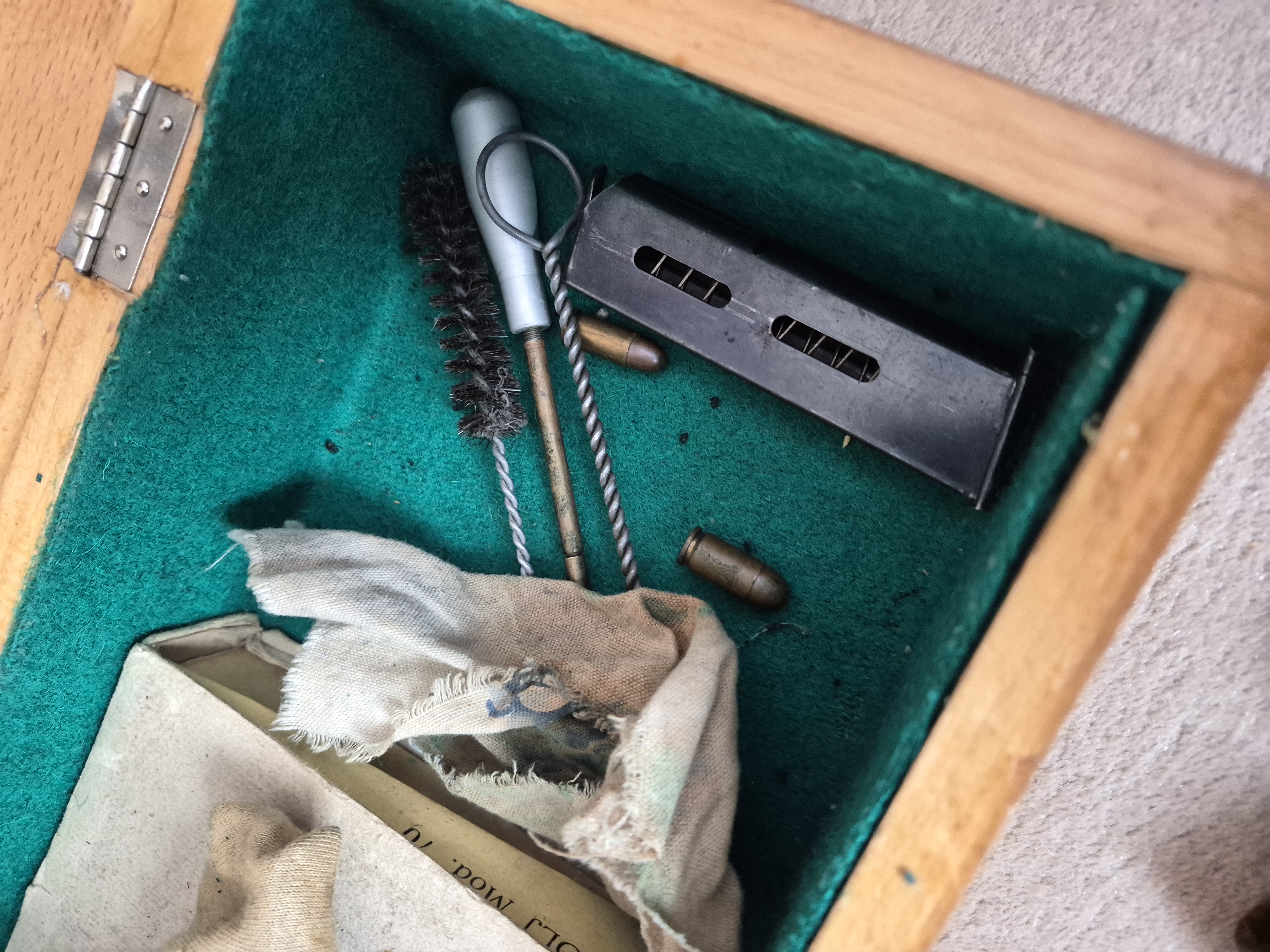 Pištolj u odlicnom stanju,kromiran,drveni rukohvat.Uz pištolj idu tri spremnika,plasticni rukohvat originalni,tvornicka kutija i 40-50 metaka.