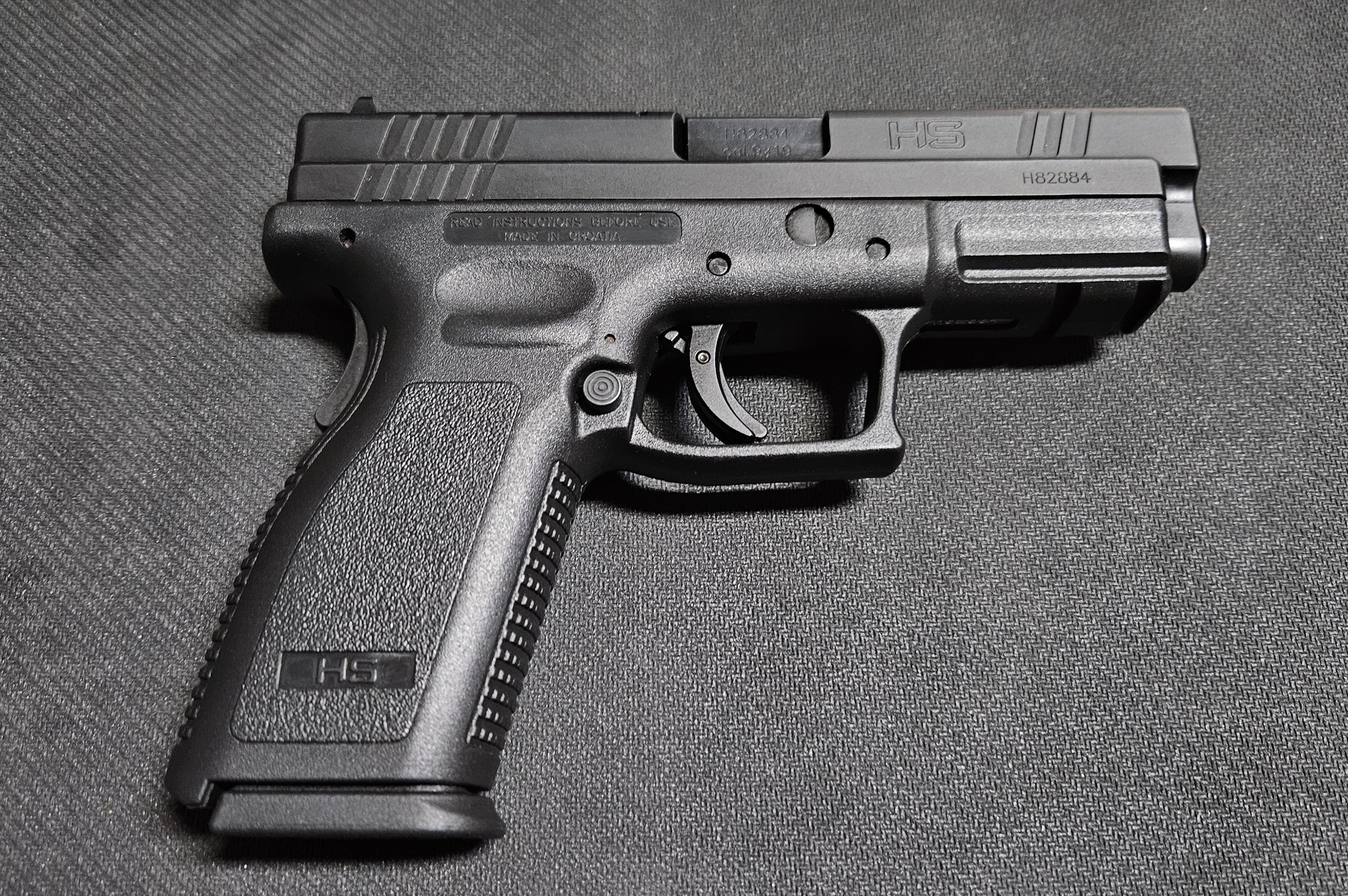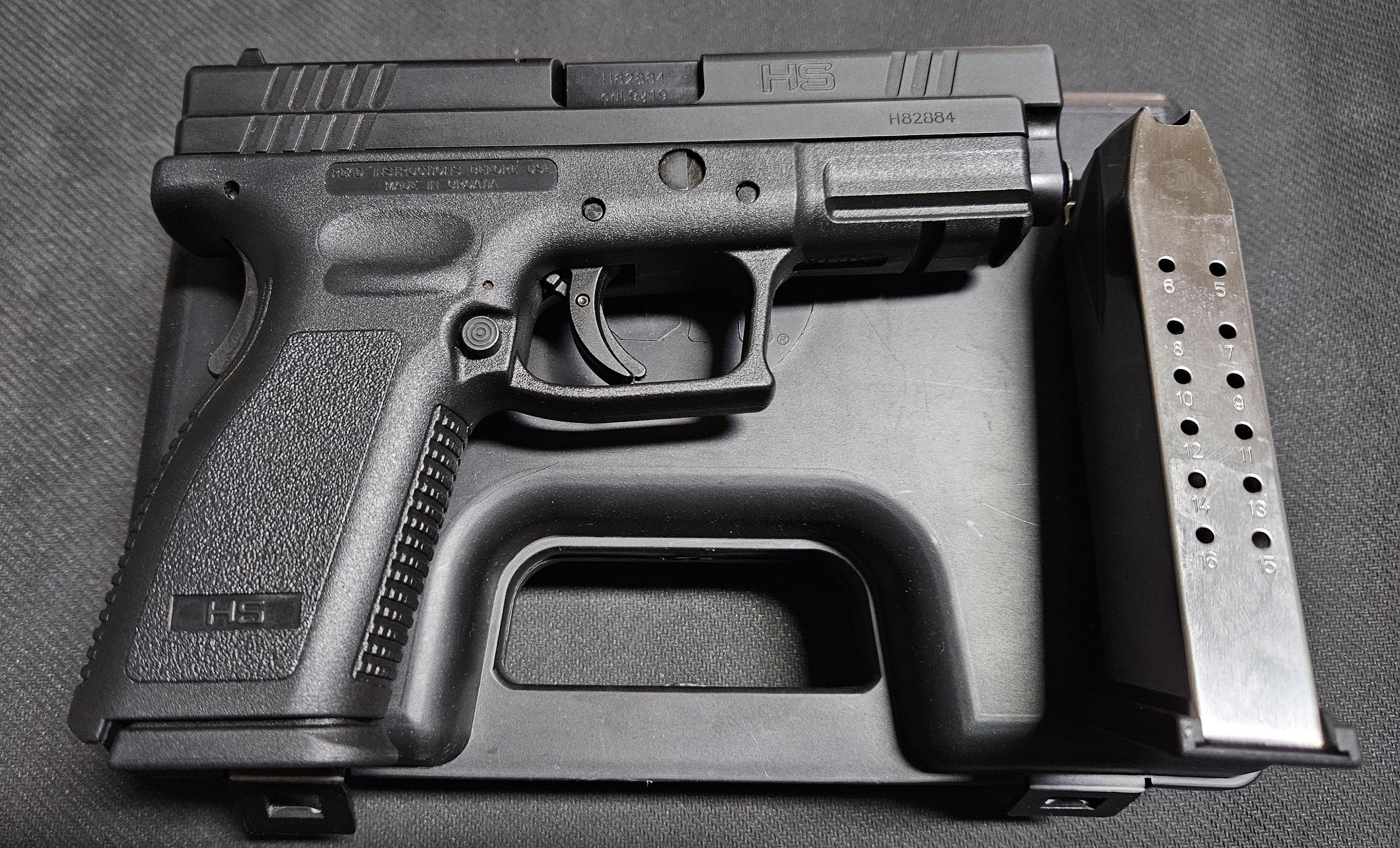 Pištolj HS Produkt M-9 u kalibru 9x19 mm, rezervni spremnik,orginalna kutija i prateći pribor.
