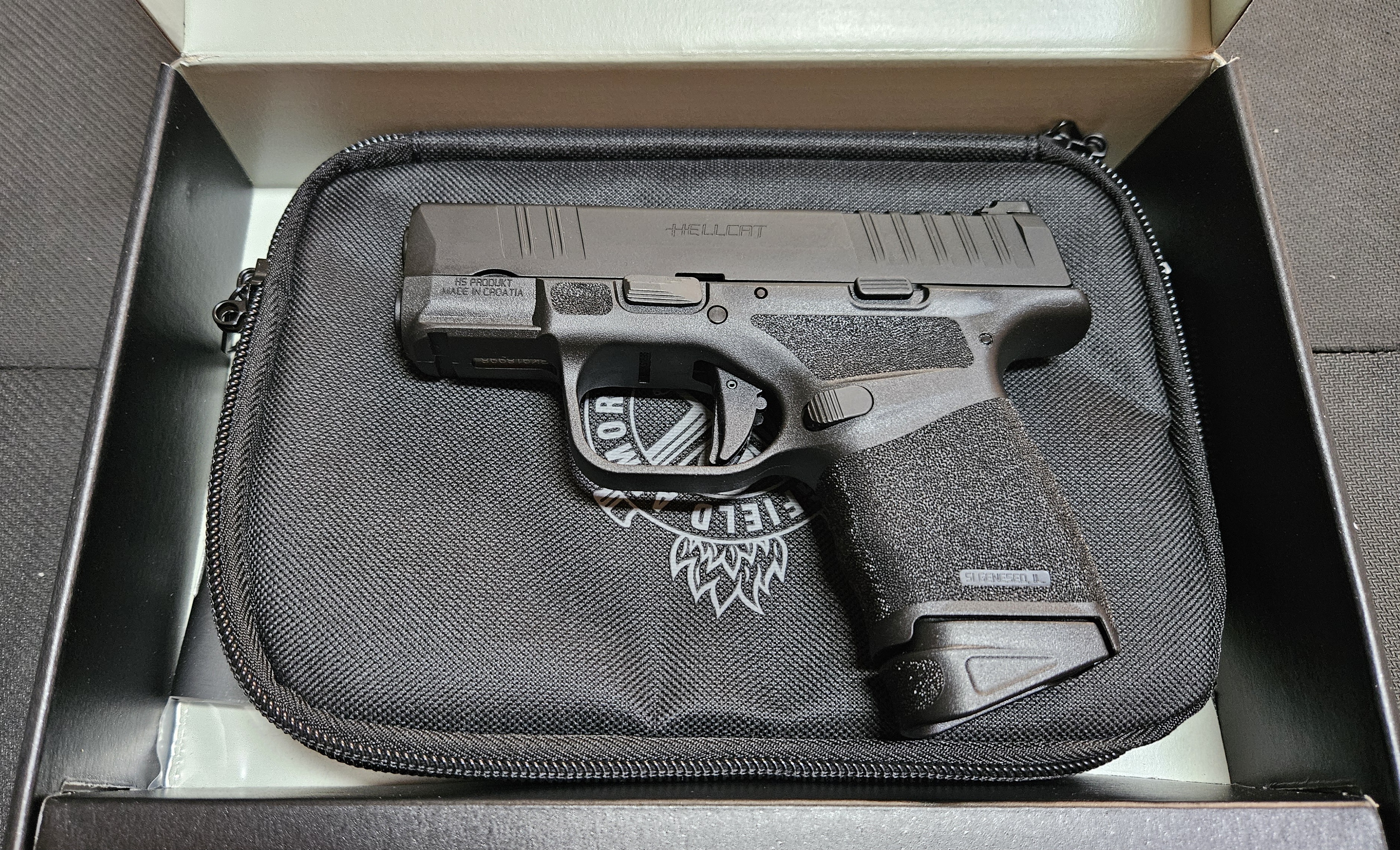 Pištolj HS Springfield Hellcat,kapacitet spremnika 10 metaka sa pratećim priborom u orginalnom pakovanju (rezervni spremnik 10+2 metka,brzi punjač,četkica za čišćenje, sigurnosna bravica,upustvo sa garancijom).