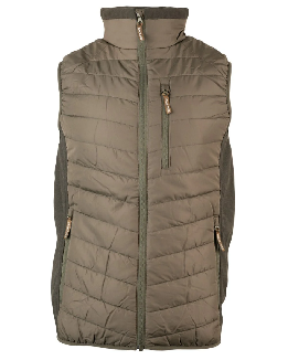 Jack Pyke hibridni prsluk je lagani, topli bodywarmer/gilet namijenjen za lovačke, outdoor i svakodnevne aktivnosti. Izrađen je od coated polyester materijala na prednjem dijelu, s 200 gsm termalnom izolacijom, dok bočni paneli sadrže polar fleece koji daje dodatnu udobnost, rastezljivost i dobro zadržavanje topline. Model ima puni frontalni zip sa štitnikom za bradu i elastični struk koji pomaže boljem prijanjanju po tijelu, a uz to nudi tri džepa sa zipom (dva donja i jedan prsni) za praktično nošenje sitne opreme i ličnih stvari. Zbog lagane, ali tople konstrukcije dobro služi kao srednji sloj ispod jakne ili samostalni vanjski prsluk u umjerenim vremenskim uslovima.