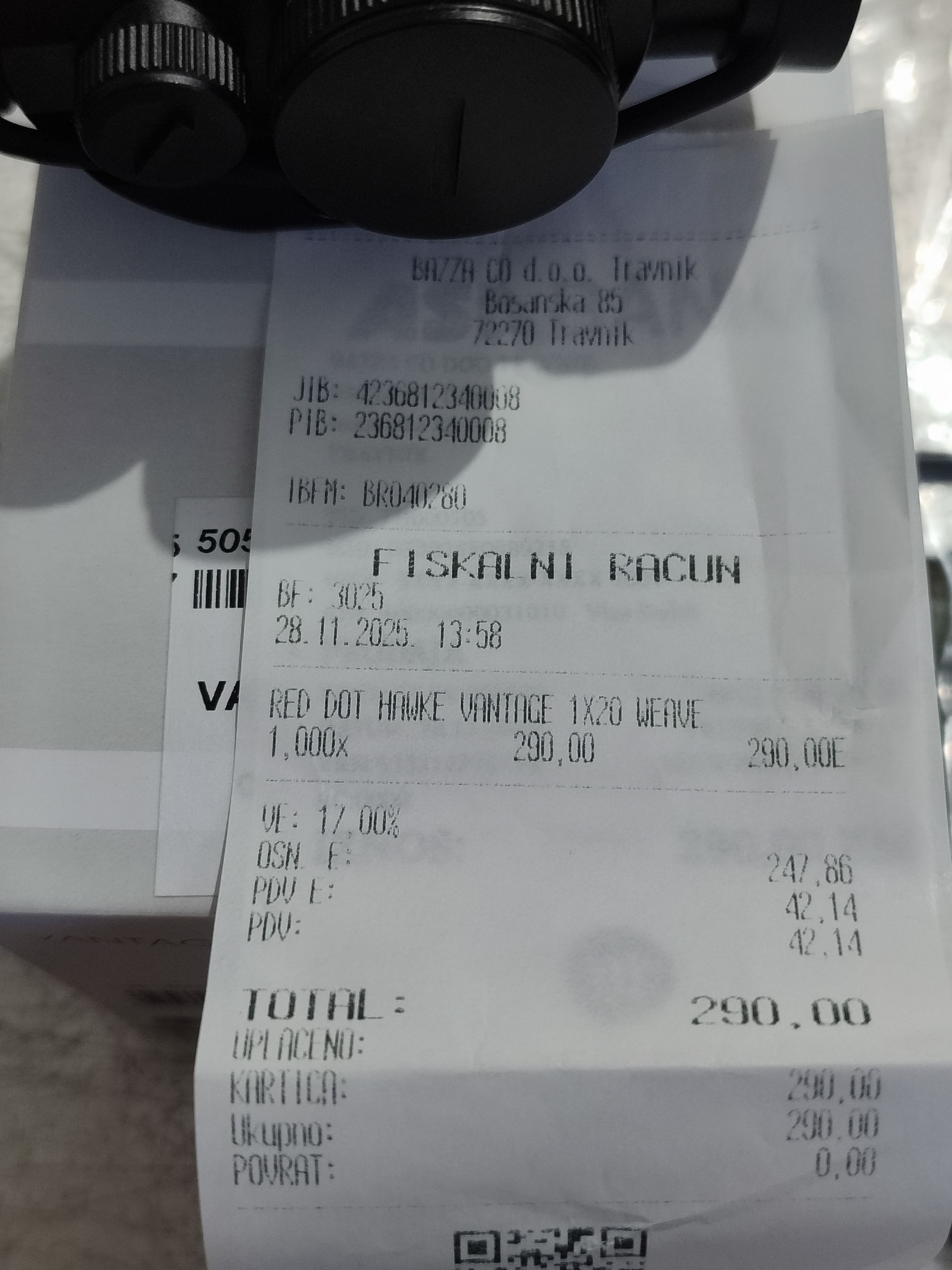 Red dot je nov ,uz njega dobijate račun i garanciju