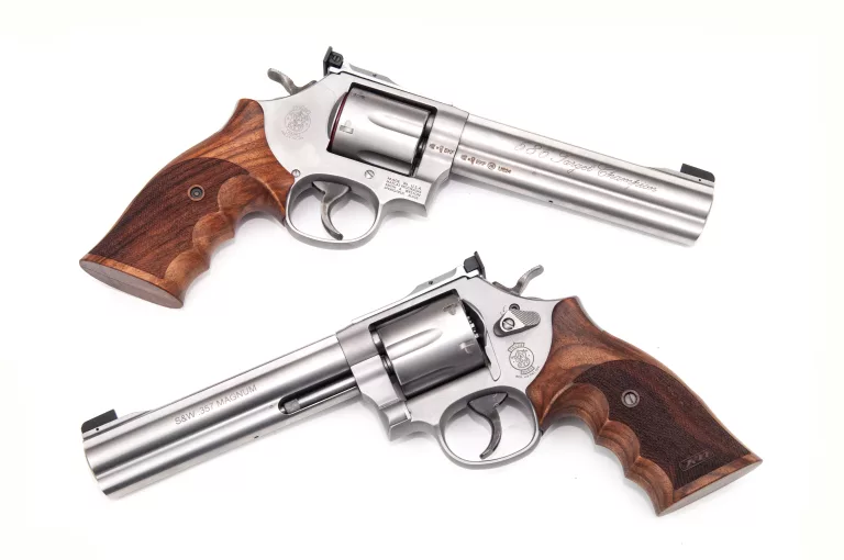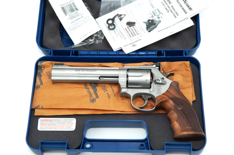 Smith & Wesson je najveći proizvođač pištolja u Sjevernoj Americi. Osnovan 1852. godine, smatra se pionirom u konstrukciji revolvera. Nakon što je 1886. godine predstavio pouzdani revolver dvostrukog djelovanja, brend je brzo postao popularan. Smith & Wesson je jedan od najprepoznatljivijih brendova u svijetu kada su u pitanju pištolji. S&W Medium Revolveri su razvijeni kako bi zadovoljili zahtjevne potrebe sportskih strijelaca. Okvir je vrlo robusno konstruiran. Cilindar je dizajniran za kontinuiranu upotrebu s kalibrom .357 Mag. i može izdržati čak i najzahtjevniju upotrebu. Posebno opremljen za sportske strijelce sportskim čekićem i okidačem (SA/DA). Podesivi nišan LPA TXT 01-07 s prednjim nišanom. Rukohvati za mečeve Karla Nilla. Sportski čekić i sportski okidač za optimalne rezultate. Tehnički detalji: Kalibar: .357 Mag / .38 Spec. Kapacitet cilindra: 6 metaka Dužina cijevi: 152 mm (6 inča) Ukupna dužina: 303 mm Težina: 1250 g Nišani: Podesivi zadnji nišan LPA TXT 01-07 sa prednjim nišanom Rukohvat: Čelik - Srebrni Ploče rukohvata: Drvo - Prirodno - Karl Nill Cilindar: Čelik - Srebrni Posebne karakteristike: Sportski čekić i sportski okidač Okvir: Srednji (L) okvir Sistem: Jednostruko / Dvostruko djelovanje Završna obrada: Matirano stakleno zrno