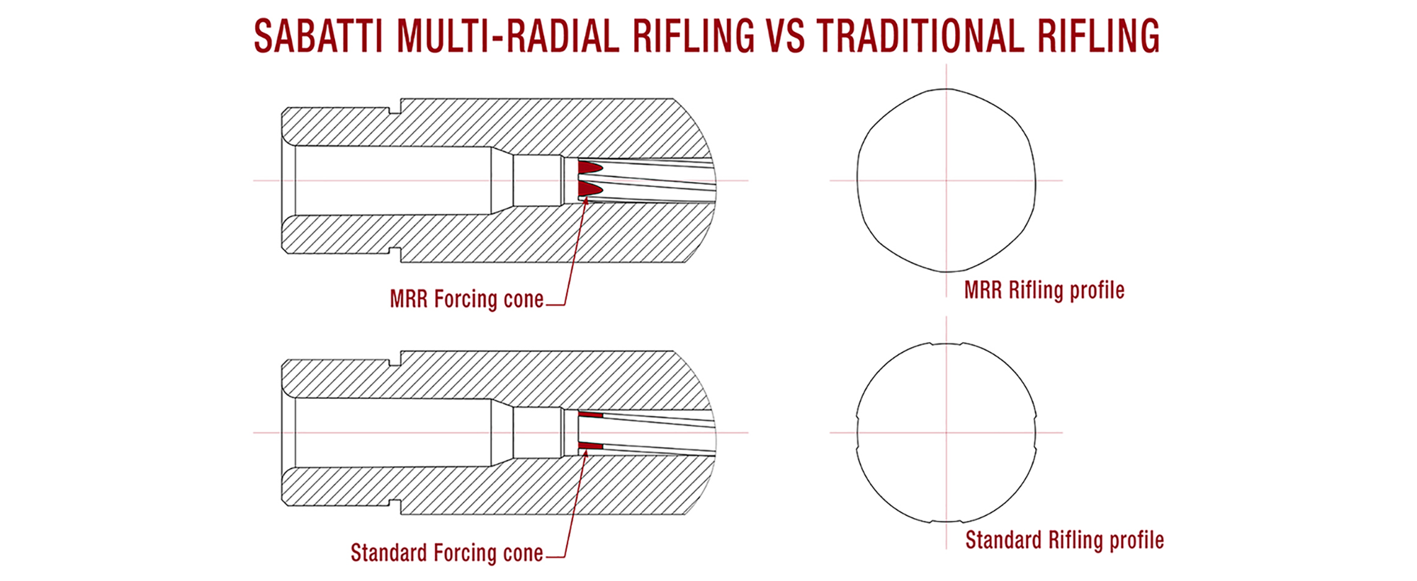 Teška "bull" cijev dužine 24" (61 cm) s inovativnim MRR (Multi-Radial Rifling) ožljebljenjem. MRR omogućuje veće početne brzine zrna, manje trenje i ekstremnu preciznost uz lakše čišćenje.