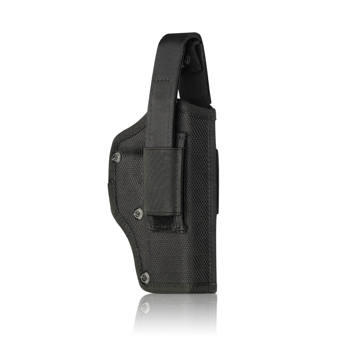 Futrola je univerzalna lijeva-desna i prikladna je za većinu pištolja pune veličine i kompaktnih pištolja. Tijelo futrole s karakterističnim izbočenjem u području okidača, što omogućuje da pištolj uskoči u futrolu, slično futrolama od kydexa. Unutarnji rub formira plastični dio, koji se može koristiti za podešavanje stupnja stezanja s dva vijka. Sigurnosni pojas je dvostruki, gdje je prvi sloj print, a drugi čičak.