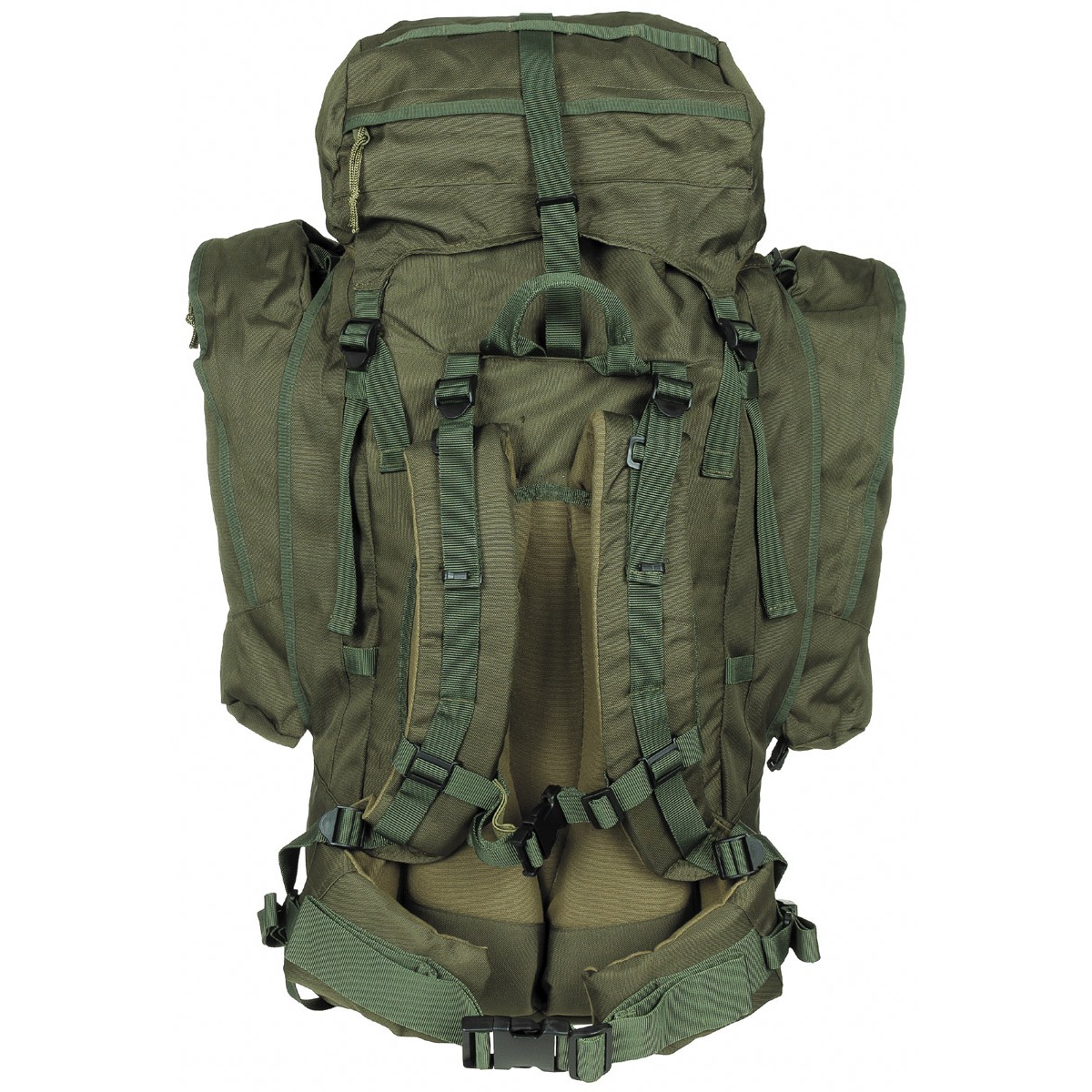 podesive, podstavljene naramenice/naramenice za krilo Po 1 kopča na naramenici za sustav hidratacije dodatno podešavanje visine naramenica podesivi remen za prsa Podstavljeni stražnji dio s mogućnošću skidanja Aluminijski okvir za pojačanje 1 prednja i stražnja ručka za nošenje poklopac koji se može skinuti s raznim petljama i Džep s patentnim zatvaračem izvana i iznutra Glavni pretinac s dvostrukom uzicom i odvojivi donji odjeljak (vezica i čičak) Vanjski patentni zatvarač za pristup donjem pretincu 2 odvojiva bočna džepa (dnevni ruksaci) s patentnim zatvaračem, Može se kombinirati s patentnim zatvaračem u dodatni ruksak 2 kompresijske trake iza svakog bočnog džepa Prednji dio s 2 elastične kopče za brzo otpuštanje i 2 kompresijske trake ispod za npr. vreću za spavanje