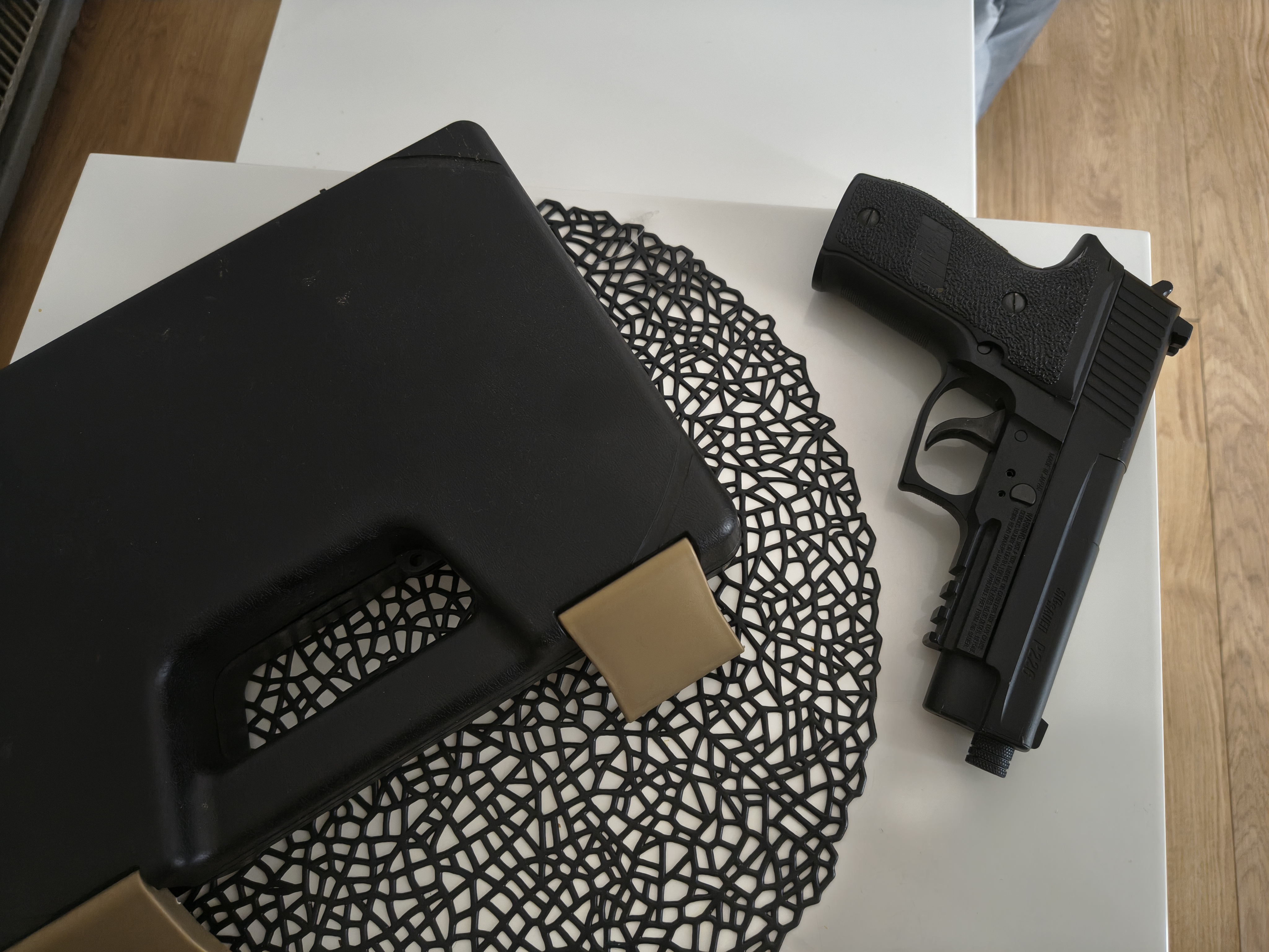Sig Sauer P226. 4.5mm. Blowback akcija.Ispalio svega 5 patrona tako da je praktično nov.Savrseno očuvan.Uz pištolj ide kutija dijabola,2 CO2 patrone,sva prateća dokumentacija i kofer.16900 dinara Niš. 0600136153